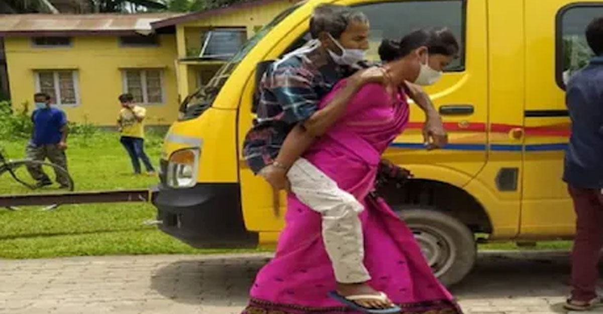 করোনায় আক্রান্ত শ্বশুরকে পিঠে করে হাসপাতালে নিলেন পুত্রবধূ